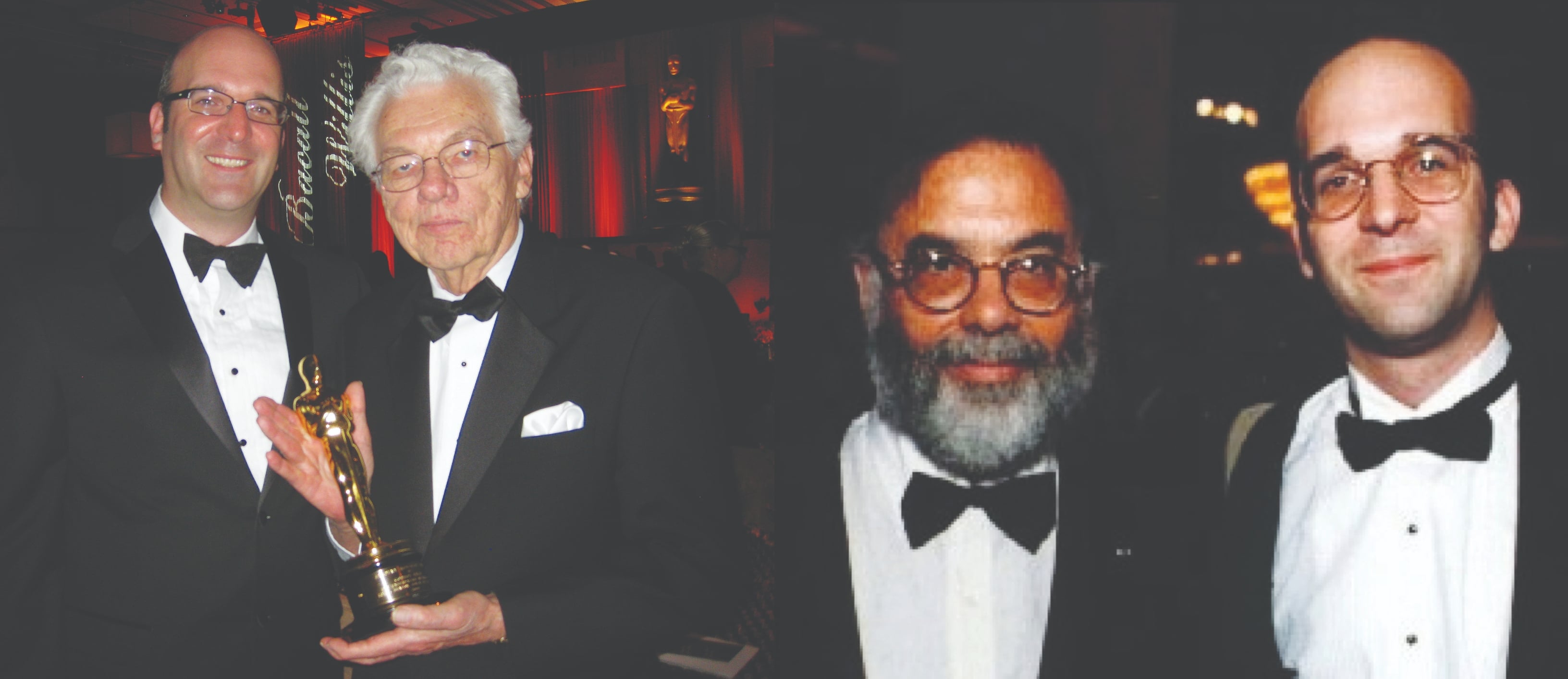 Sharing a special moment with Gordon Willis, ASC after the legendary cinematographer received his Honorary Academy Award in 2009; rubbing shoulders with Francis Ford Coppola in 1998 after the director received the ASC Board of Governors Award.