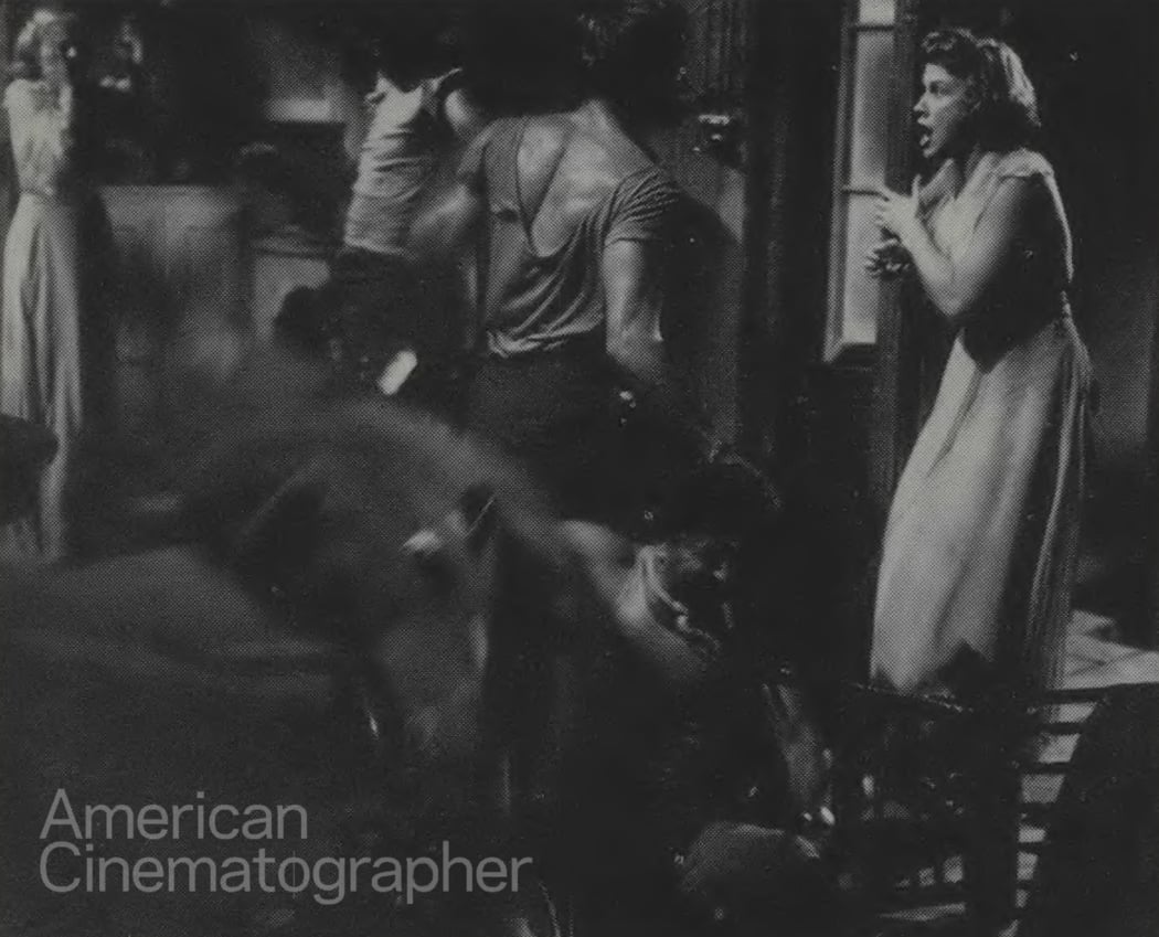 For Harry Stradling, A.S.C., Streetcar was an important milestone in a long and eventful career. When just 16 years old he began his career as an assistant to his uncle who was Mary Pickford’s first cameraman at the Famous Players-Lasky Studio in New York. After that, he worked in rapid sequence as assistant to ten or twelve other cameramen, including George Folsey and Ernie Haller. At the ripe old age of 19, he became a full-fledged director of photography, probably the youngest in the history of the industry. He worked on one of the first talkies in 1929, a film called Syncopation, starring Morton Downey. He then sailed for Paris supposedly to film one picture, and ended up staying in that magic city for six years.