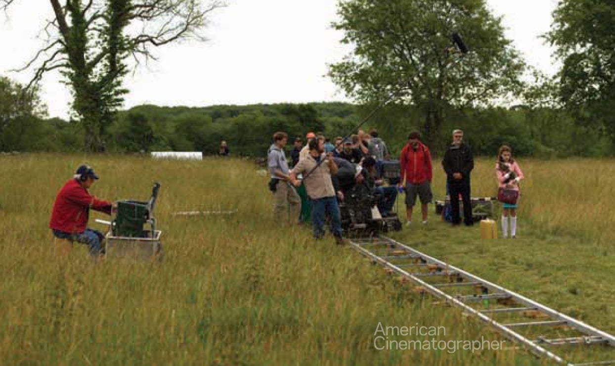We did use a Technocrane for the scene in which Suzy runs up the steps inside her house. This interior was a set, and the camera starts on the first floor and cranes all the way up to the third floor. There were other ideas about how to accomplish this, but I feel that the Technocrane was the most effective choice. We also used a Steadicam for one exterior shot of Bob Balaban as he walks through a field, but that was it for conventional camera rigs. Our key grip, Sanjay Sami, was very adept in the design of our low-tech approach. To achieve the shots that establish the house interior at the beginning of the film, we laid a dolly track and I would swish-pan the camera at the preset marks.