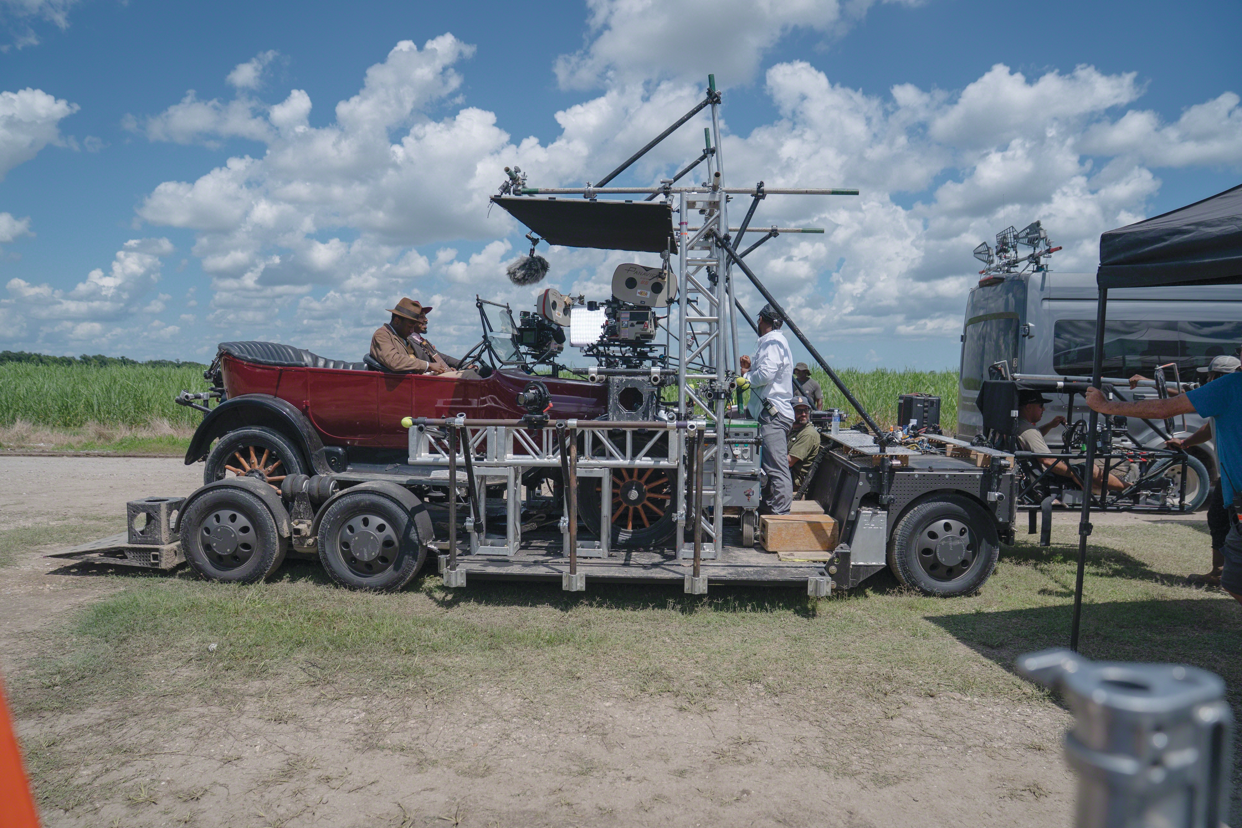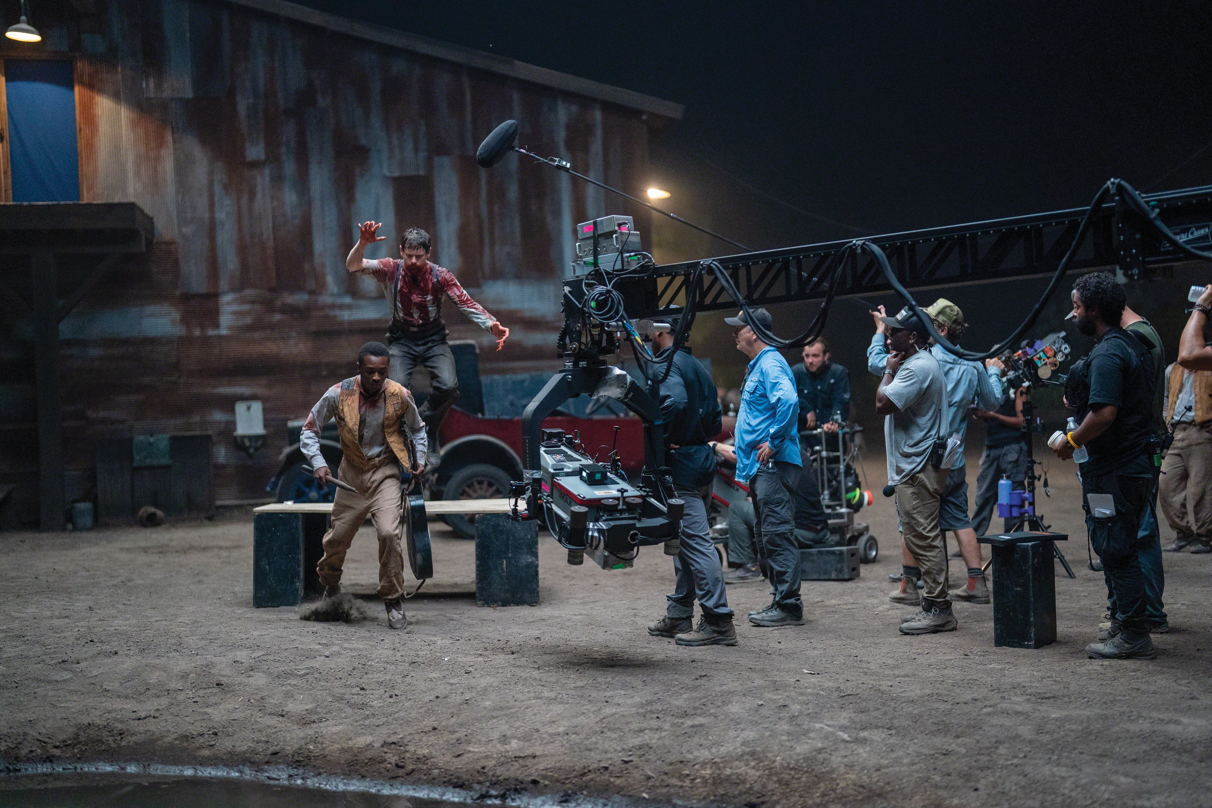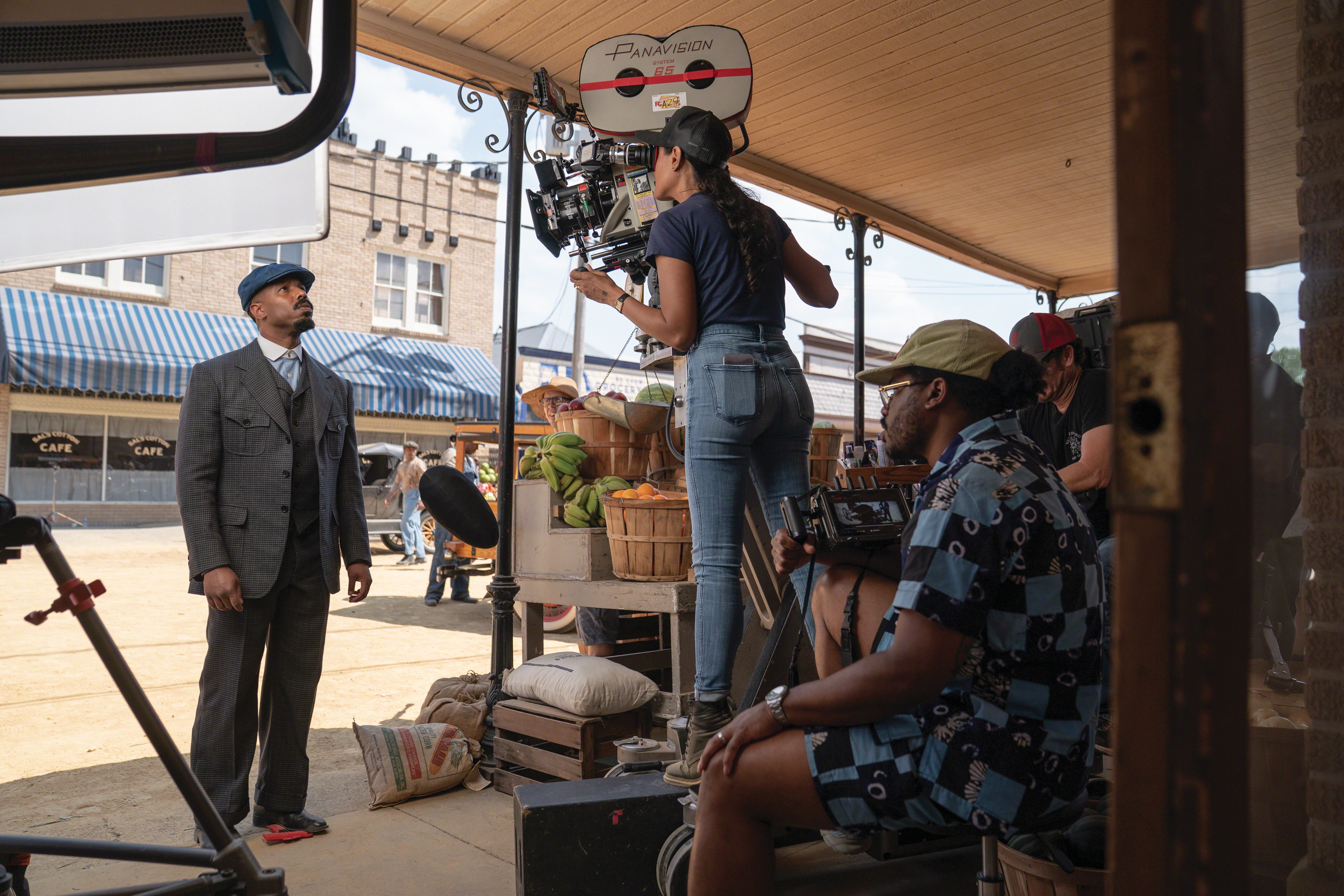 When Warner Bros. approached Coogler about shooting at least some of Sinners in a larger format (see sidebar, page 30), specifically Imax, he and Durald became interested in originating on film to achieve the full 1.43:1 Imax frame. They had shot portions of the digitally originated Wakanda Forever in 1.90:1 for digital Imax exhibition. Durald notes, “When I think of Imax, I think of Christopher Nolan and The Dark Knight [Wally Pfister, ASC; AC July ’08]. That’s the first Imax picture I saw in a theater on a film print. It blew me away.”