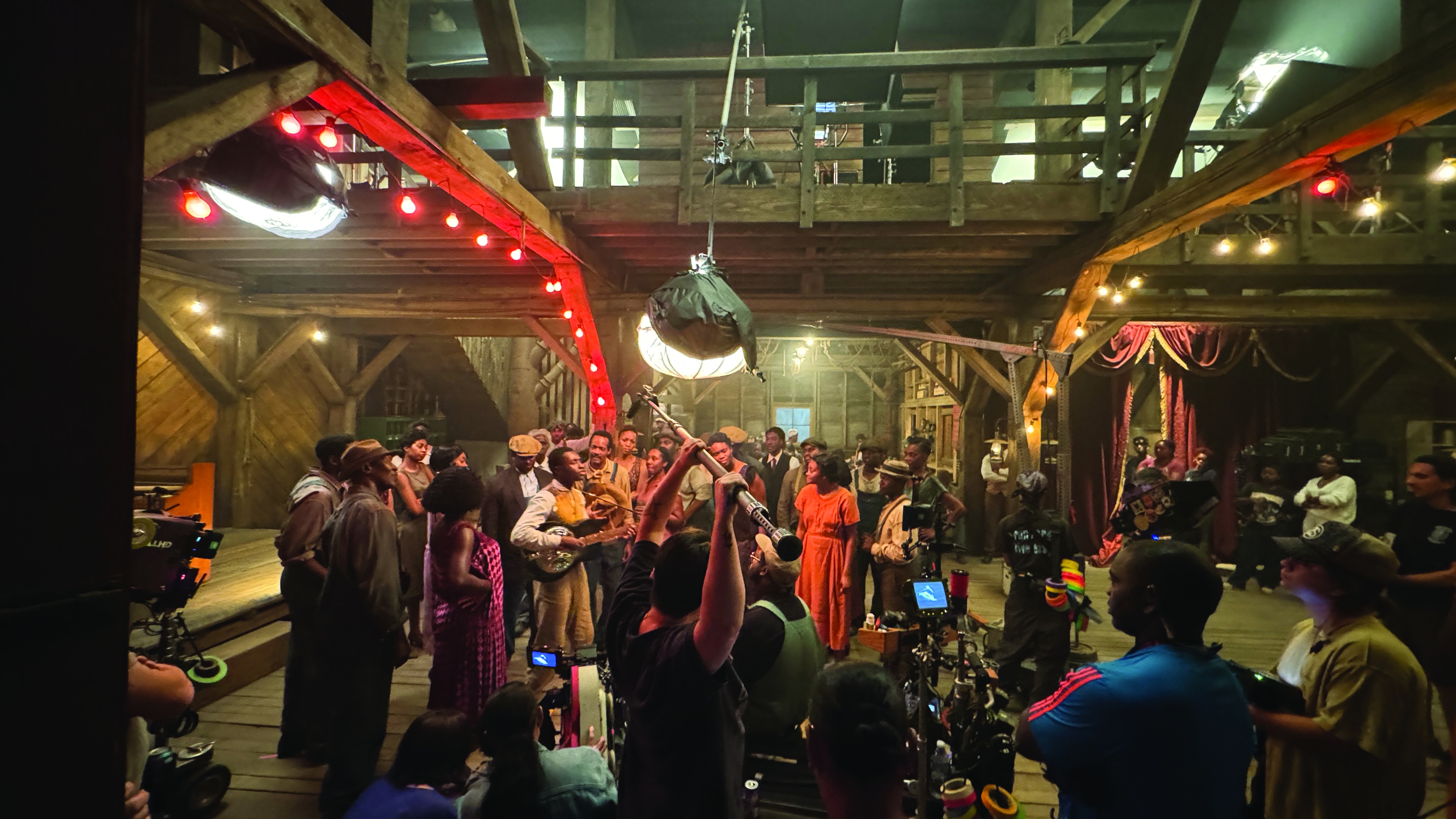 “We used motivated firelight inside the juke joint from wall sconces and hanging kerosene and oil lamps,” Bartolini adds. “But our main motivated light came from the hanging incandescent string lights, or the can lights on the stage. The toplight gave Ryan and Autumn freedom to turn the camera in any direction.”