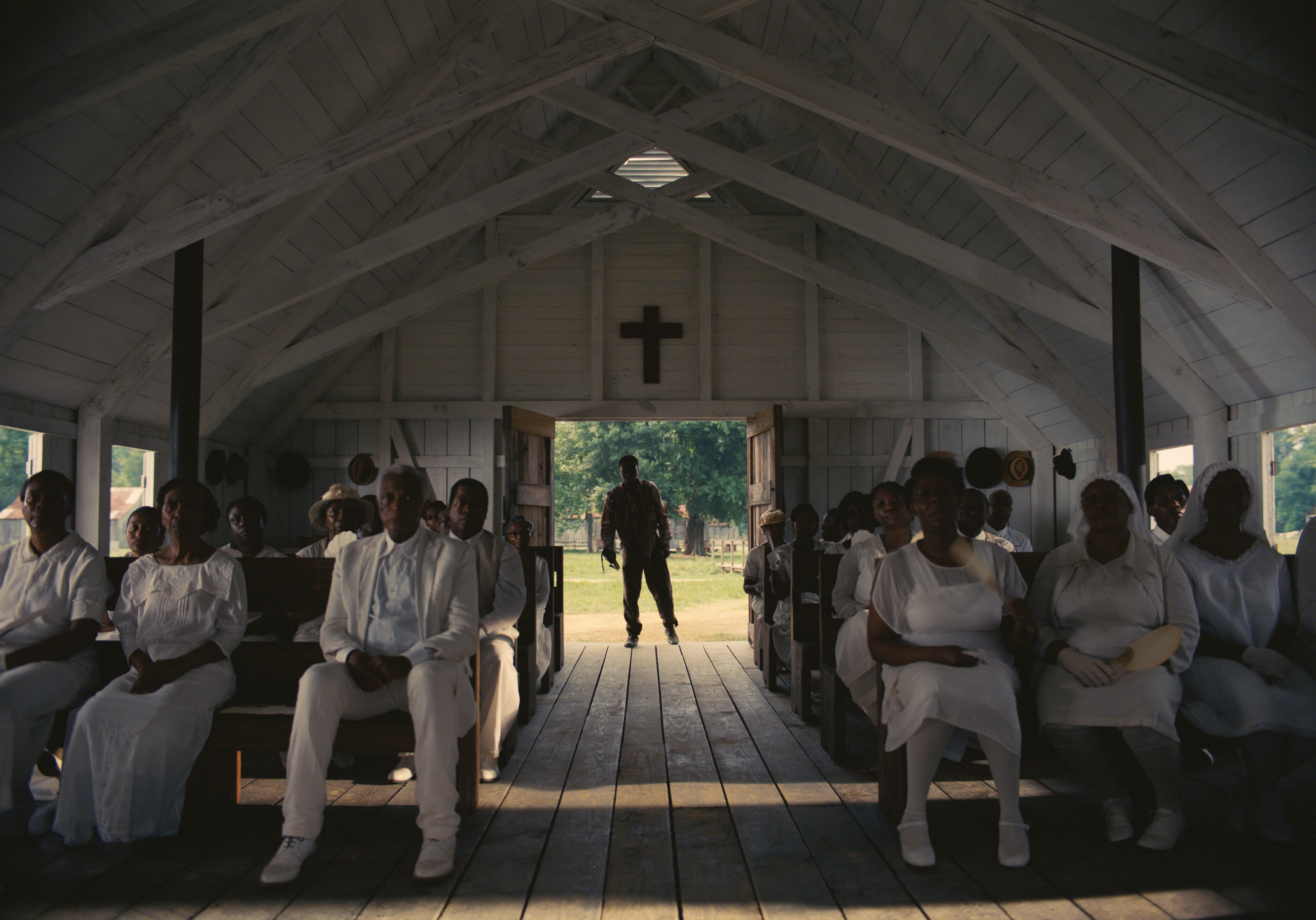 During two months of prep at Second Line Stages in New Orleans, color was the focus of discussions and testing involving Durald, production designer Hannah Beachler and costume designer Ruth E. Carter. The overall palette is somewhat saturated, with a preponderance of blacks, browns and blues contrasting with the white of the cotton fields and the church where Sammie’s father preaches. A warm, golden glow is often in the mix.
