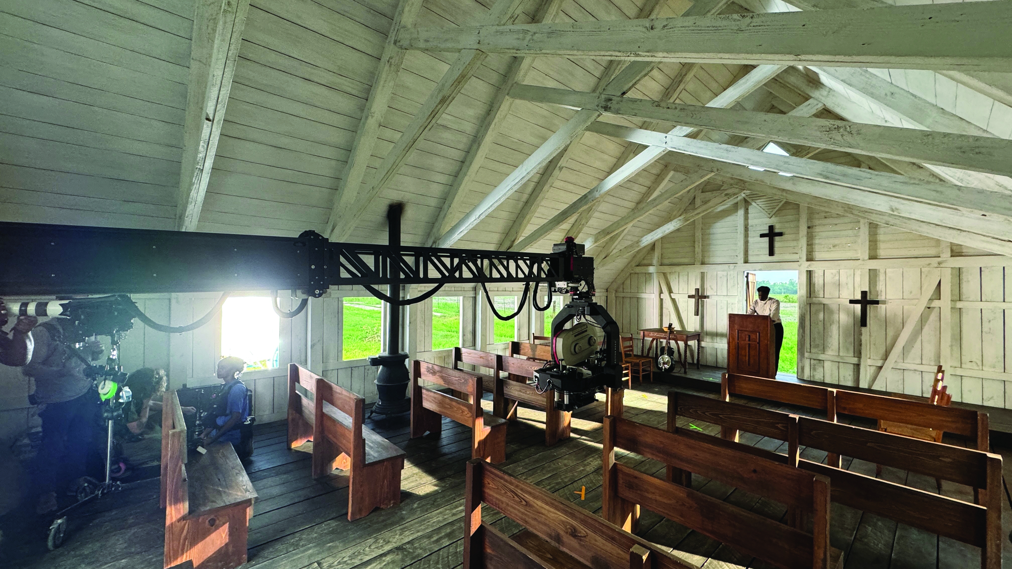Durald notes that about 65 percent of the film was shot on stage, while about 35 percent was captured on location. The crew shot location work in Donaldsonville, Thibodaux and Braithwaite. At times, these days were fraught with challenges, including triple-digit temperatures and the need to haul tons of cables and equipment for miles amid unfriendly wildlife. (Key rigging grip Domenic Pacino and rigging gaffer Jason Fitzgerald organized that effort.) In addition, unpredictably severe springtime weather caused delays and destroyed some sets.