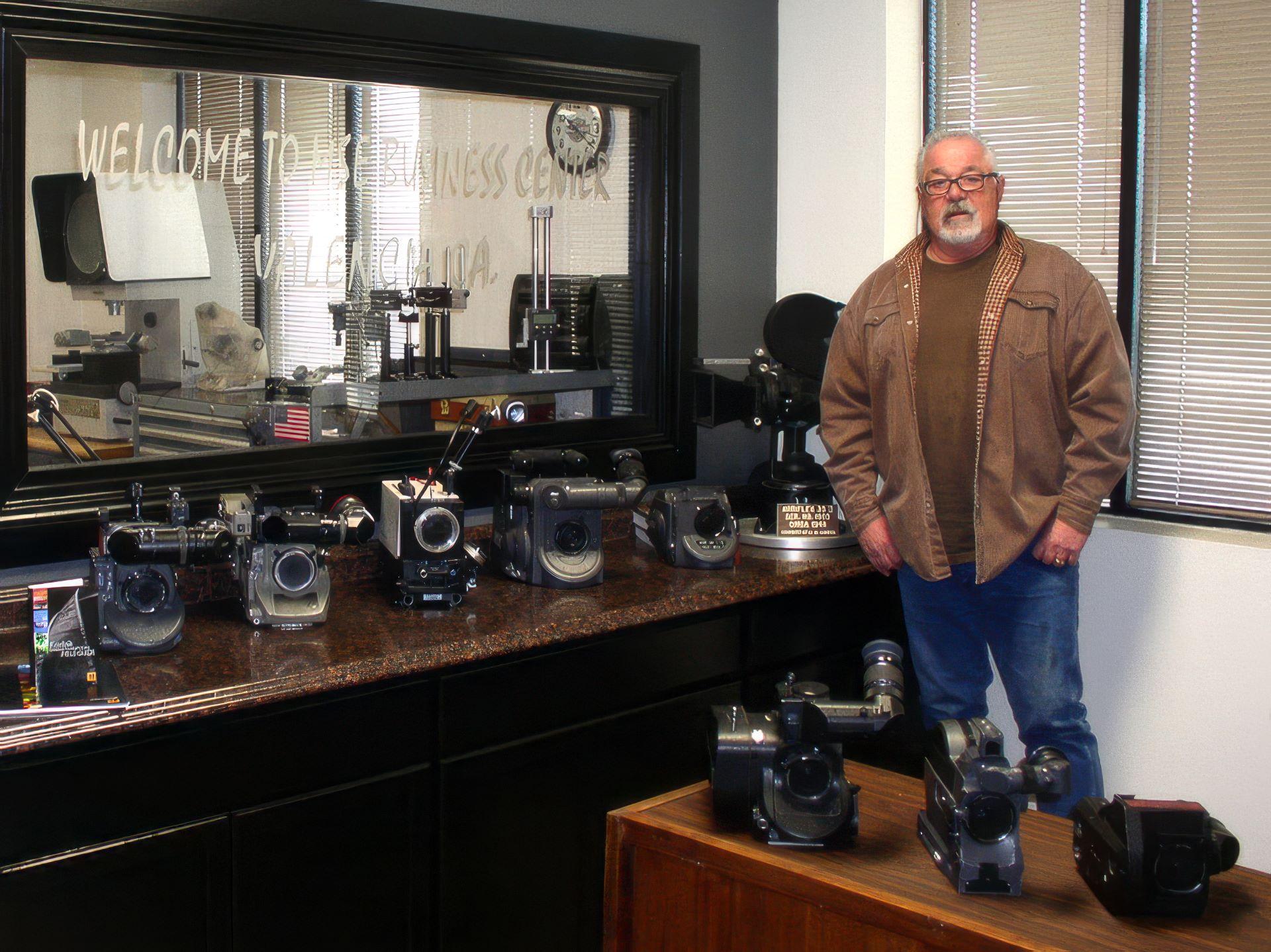 Well, just picture walking into the service department, with all the special tools, the test equipment, the collimators, machine tools, fasteners, parts — I pretty much picked up the whole thing and moved it here. If you want to work on cameras, you need to have the right tools.