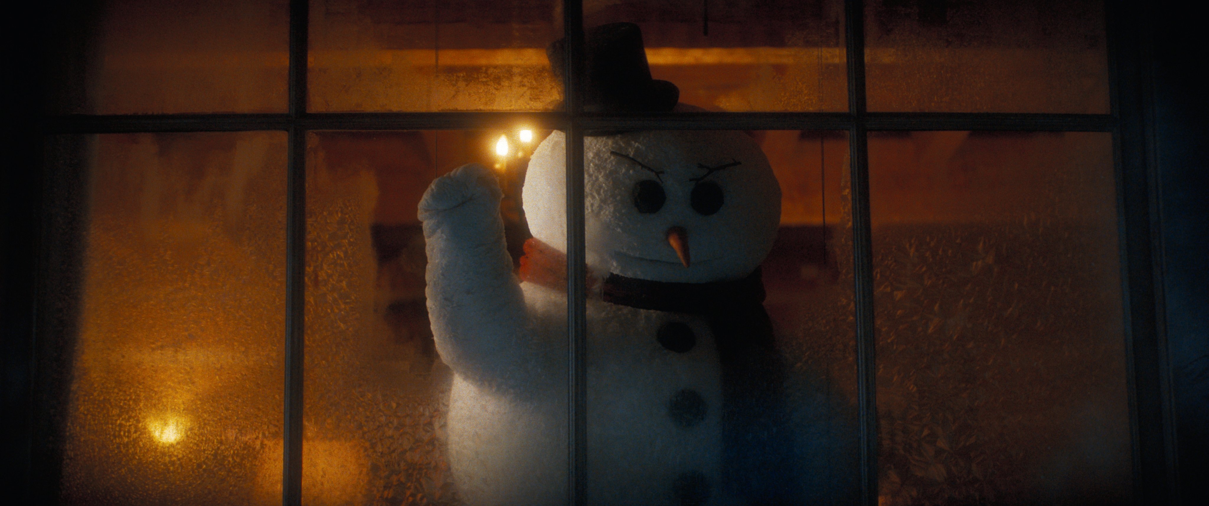 Our A-camera operator BJ McDonnell, with whom I’ve worked with for years, captured the snowman’s POV shots on Steadicam. For a shot in which the snowman chases after Frank and Beth with a gun, BJ is actually wielding the pistol in the foreground; he’s physically holding out the snowman puppet’s arm, with the Steadicam rig in his other hand as he’s chasing Pam and Liam. It was an especially fun sequence.