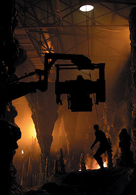 Director of photography Ross Emery, ACS took this photo of one of the cave sets, which were built onstage in Romania.