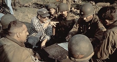 Spielberg briefs his troops about their cinematic mission. "I think Vietnam pushed people from my generation to tell the truth about war without glorifying it," the director declares. "As a result. I’ve taken a much harder approach to telling this particular story."