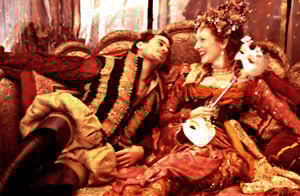 The opening sequence's circular, overhead shots establish one of the film's main visual motifs the moving camera. Aside from enhancing the depth within interiors, the perpetual motion signifies the absolute insanity of Queen Mary (Kathy Burke), who is one of many with dastardly designs against the future monarch. "Elizabeth was operating in a situation that was totally conspiratorial," Kapur relates. "I wanted to represent that the air was thick with conspiracy, so I decided to make the camera 'the main conspirator.' In my mind, what defined the way the camera moved was the fact that it was like a serpent always waiting to strike. It's constantly looking, and one never quite knows whether it's watching you." It's not until the film's end after the wizened Elizabeth quells the threatening plots that the camera ceases its snakelike movements and, according to Adefarasin, "becomes more static and, at the Queen's level, more reverential."