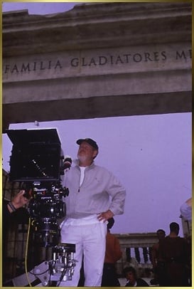 Standing tall and wielding the mighty camera, director Ridley Scott surveys an epic scene.