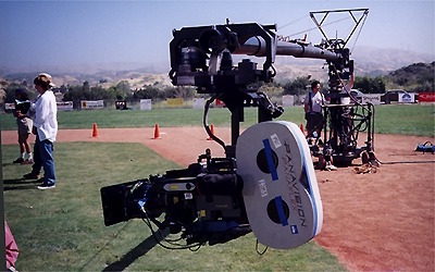 This underslung Panaflex mounted on a Louma crane was used for shooting on location in Santa Clarita. The remote-operated rig allowed a higher vantage point than the manned Pegasus crane.