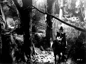 Father enters the Beast's domain, amid settings that resemble the woodcuts of Gustave Dore.