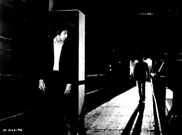These events are artfully underscored by the typically masterful photography of Willis, who enhances the story's brooding ambience with his trademark use of inky darkness and silhouettes, as well as an unerring sense of anamorphic composition. Framed (quite literally) in the scene shown here, Frady, having just witnessed the convention-center killing, attempts to elude a Parallax functionary within the structure's array of catwalks. In a daring but downbeat climax characteristic of Seventies cinema, the reporter spies an open door and makes a dash for it, only to be obliterated by a blinding blast of light as an assassin steps through and unleashes a hail of bullets (which are heard but not seen). A cynical coda reveals that a specially appointed "investigative committee" has concluded that Frady, much like Lee Harvey Oswald, "acted alone" in the convention-center job. Yet again, the Parallax Corporation has managed to pin its sinister handiwork on a hapless patsy.