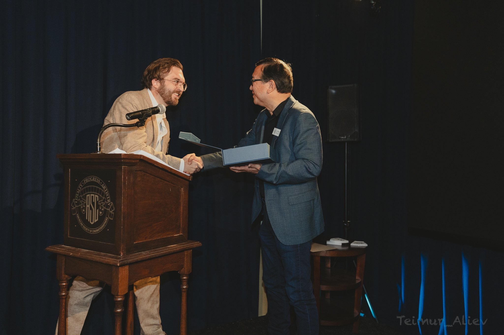 Simmons hosted on behalf of Society president Mandy Walker, who was unable to attend. In her stead, Simmons read a statement from Walker congratulating the nominees and winners; acknowledging the ceremony’s sponsors; and saluting the dedicated work of the ASC’s staff and Student Awards Committee members.