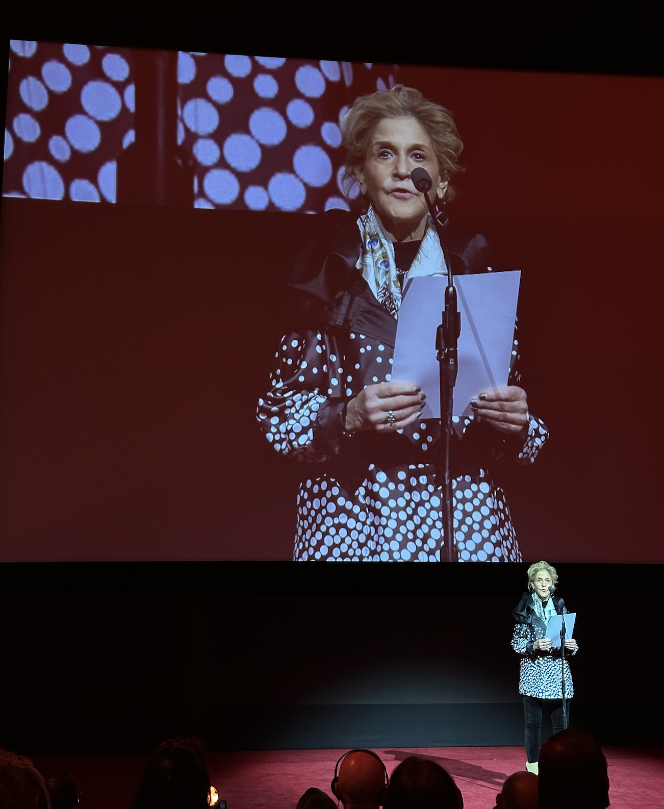 Speaking via translator toward the end of the ceremony, festival director Marek Żydowicz effectively spoke about community building, noting that Camerimage has always shown works created by women. He also announced a pair of Festival Directors Awards, which were presented to Kristen Stewart, who accepted via video, as she had already left Torun; and cinematographer Tomasz Naumiuk.