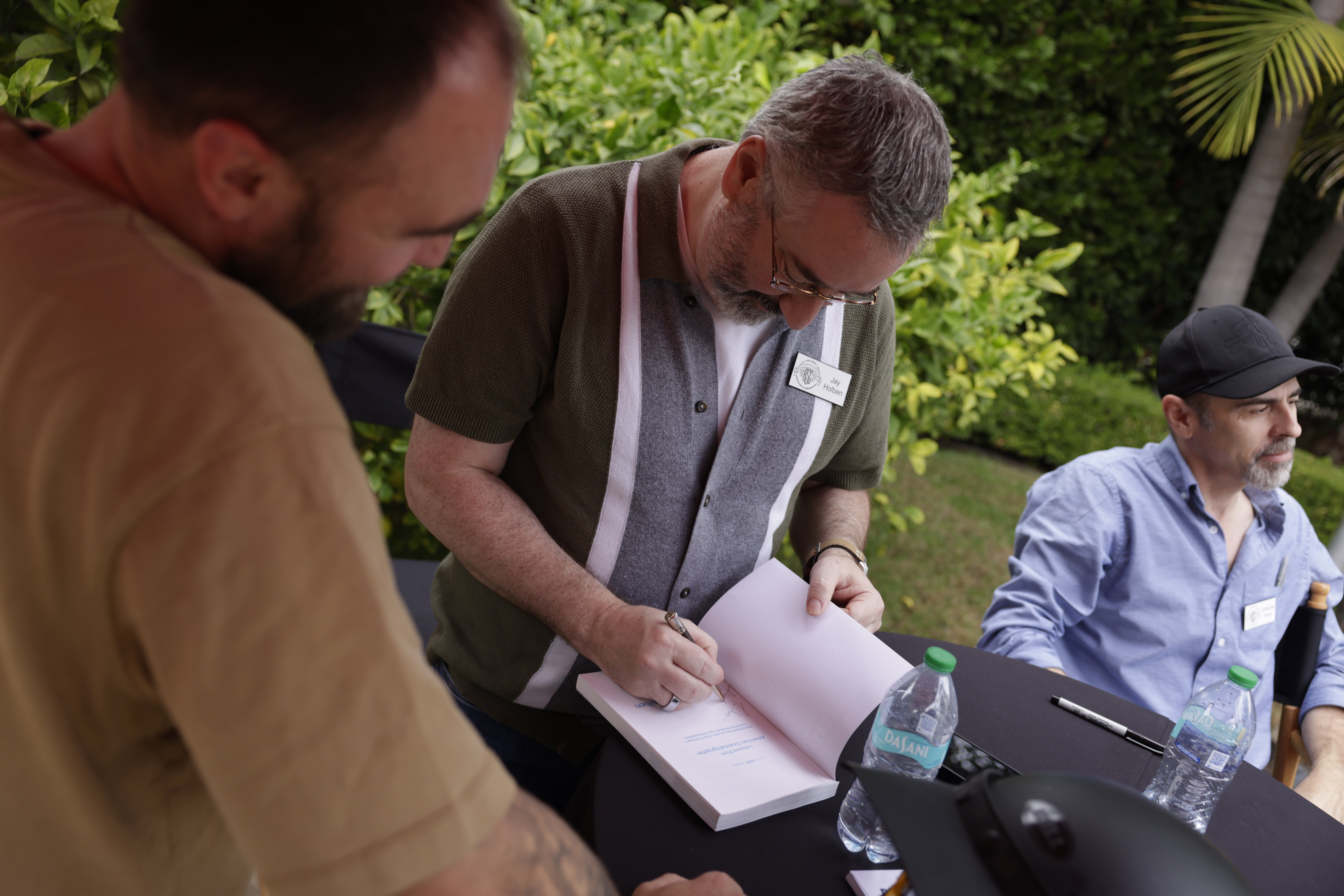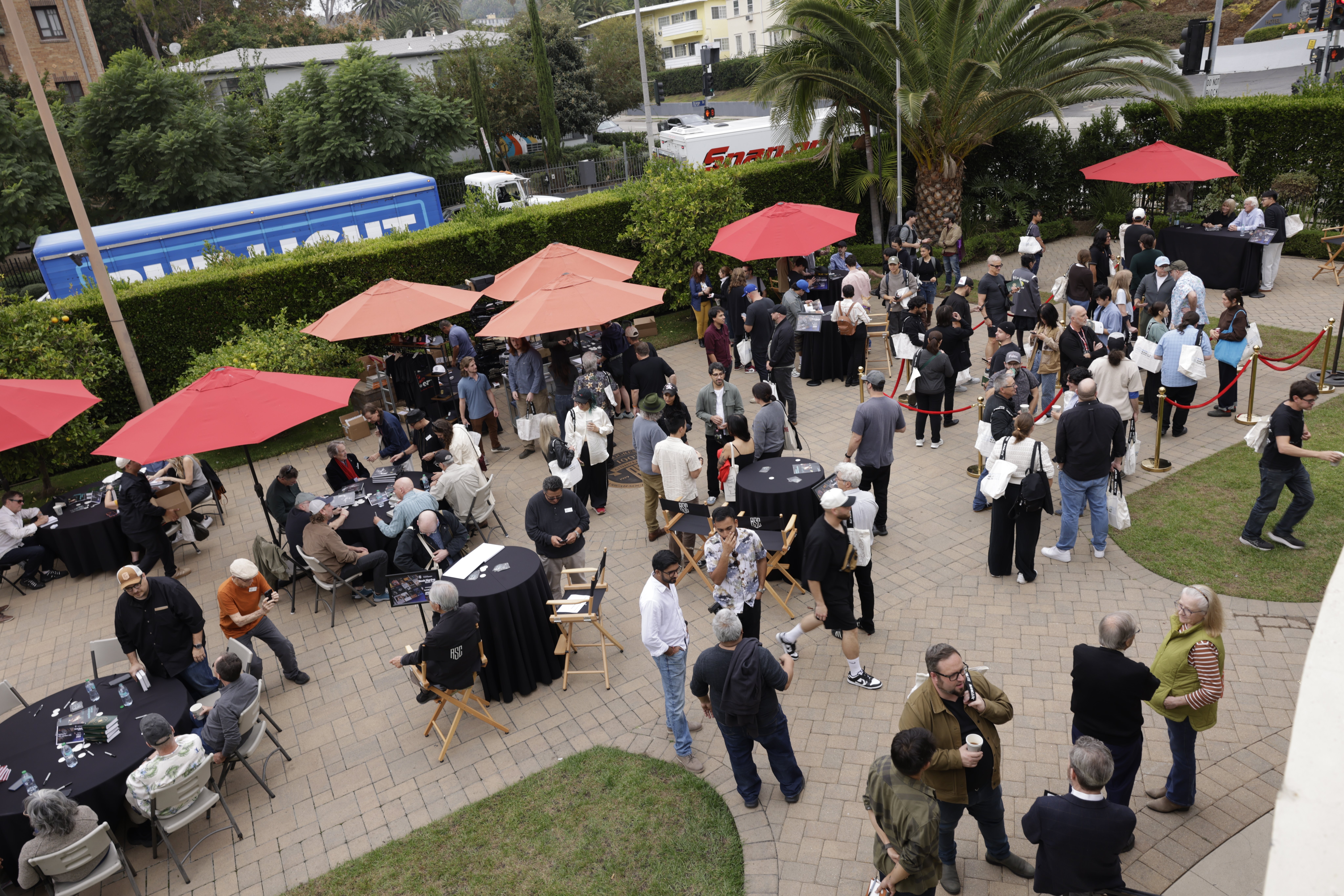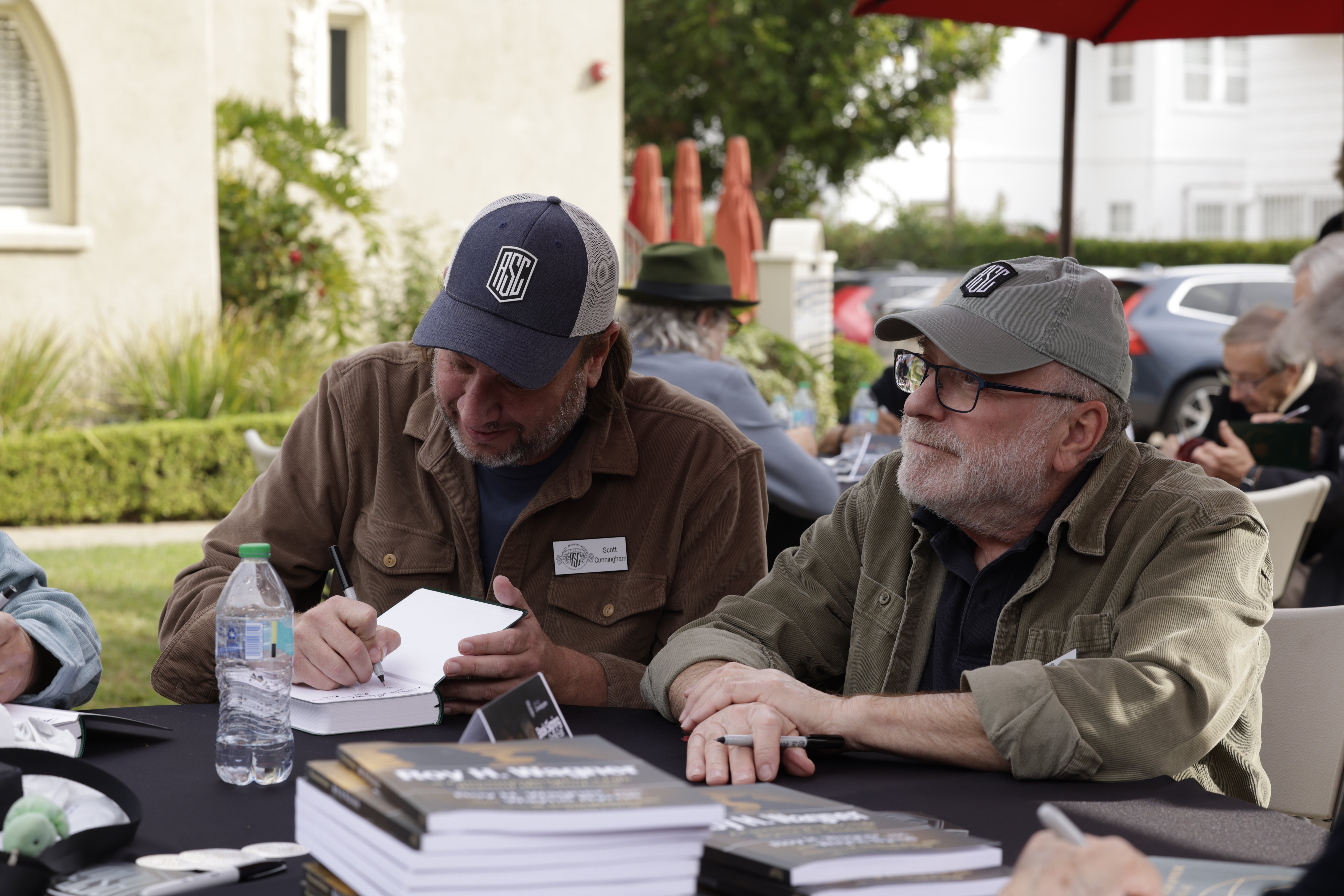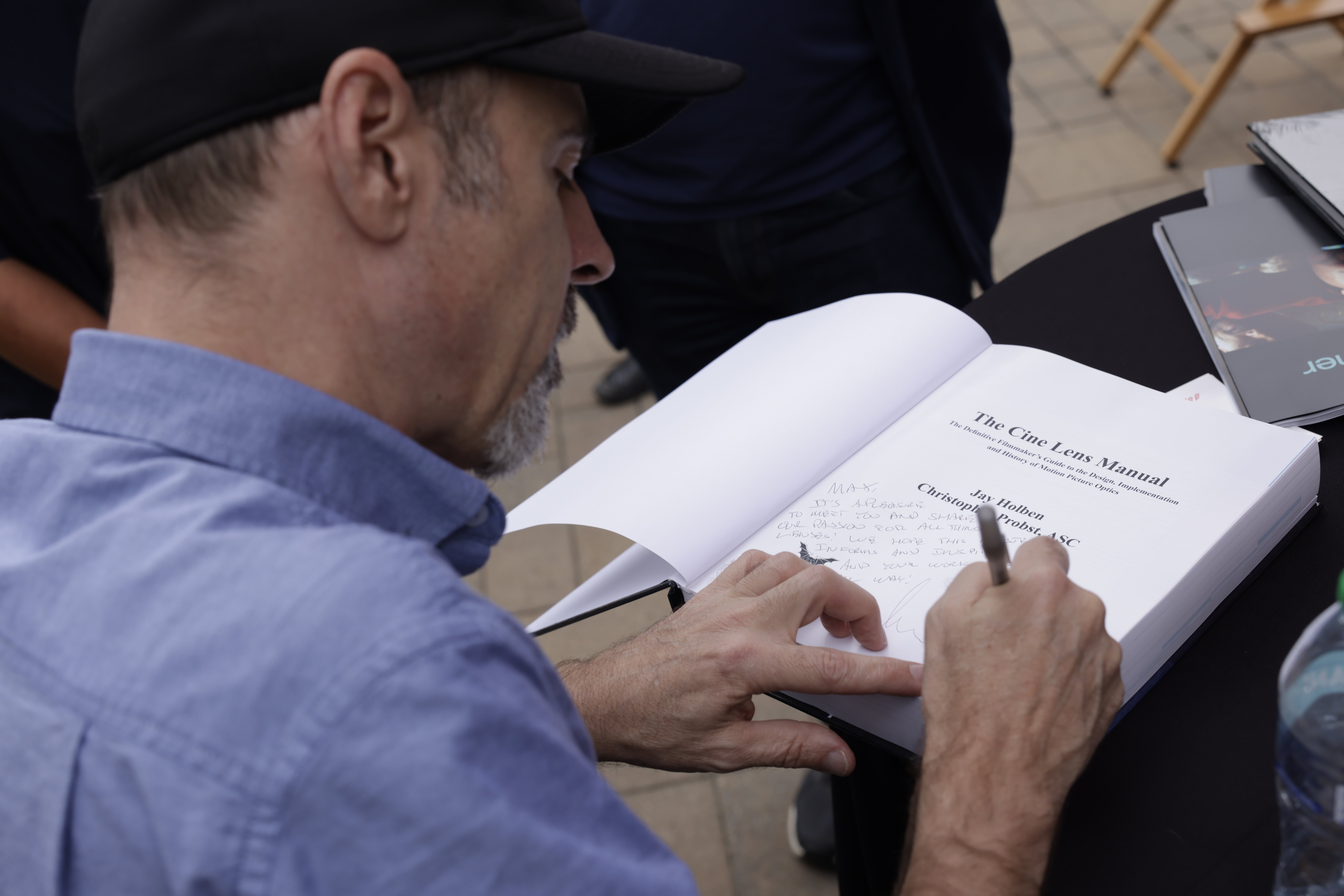 With the panel wrapped, the Book Fair went into full swing, the ASC courtyard abuzz with friendly connections made over coffee and bagels. Many waited in line to share a few words with Team Deakins and have their copies of Reflections signed, but the event’s signings expanded well beyond that: Attendees chased down ASC members to ink their personal copies of Our First 100 Years — the album-sized tome chronicling the Society’s storied history — and ASC members Hiro Narito and Roy Wagner signed their own respective books, Depth of Field: Life and Work of a Cinematographer and A Cinematographer’s Life Beyond the Shadows.